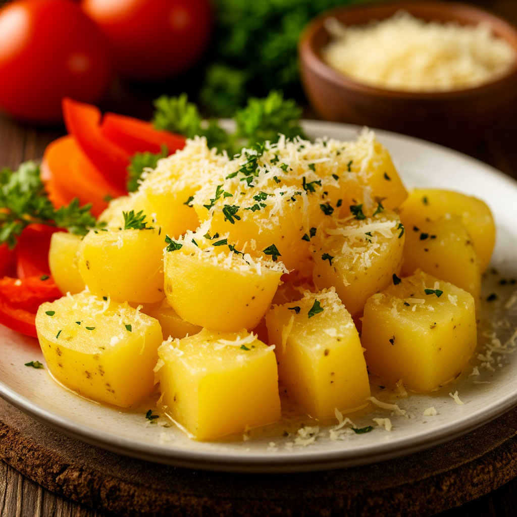 - Картофель с овощами и сыром: заранее отваренный картофель, нарезанный, разогреть на сковороде с оливковым маслом, добавить овощи и тёртый чеддер, накрыть крышкой и дать пропариться.