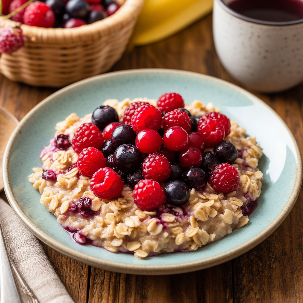 - Тёплая овсянка с ягодами (свежими или замороженными). Можно слегка протереть ягоды для мягкой текстуры.