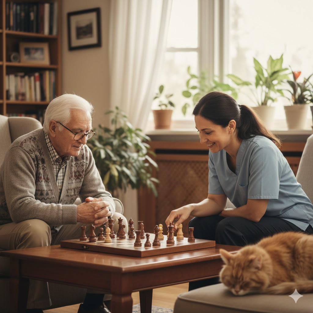 В статье расскажем, как и чем можно занять близкого в преклонном в возрасте — лично или с помощью профессиональной помощницы.