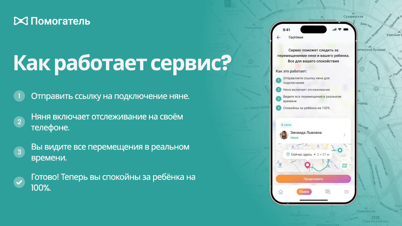 Часто родители ищут технологичные решения, которые позволяют совместить доверие и контроль. Именно такой баланс предлагает новый сервис от приложения «Помогатель» –«ГеоНяня». Это инструмент, который в режиме реального времени показывает, где находится няня вместе с вашим ребенком, превращая тревогу в спокойствие.
