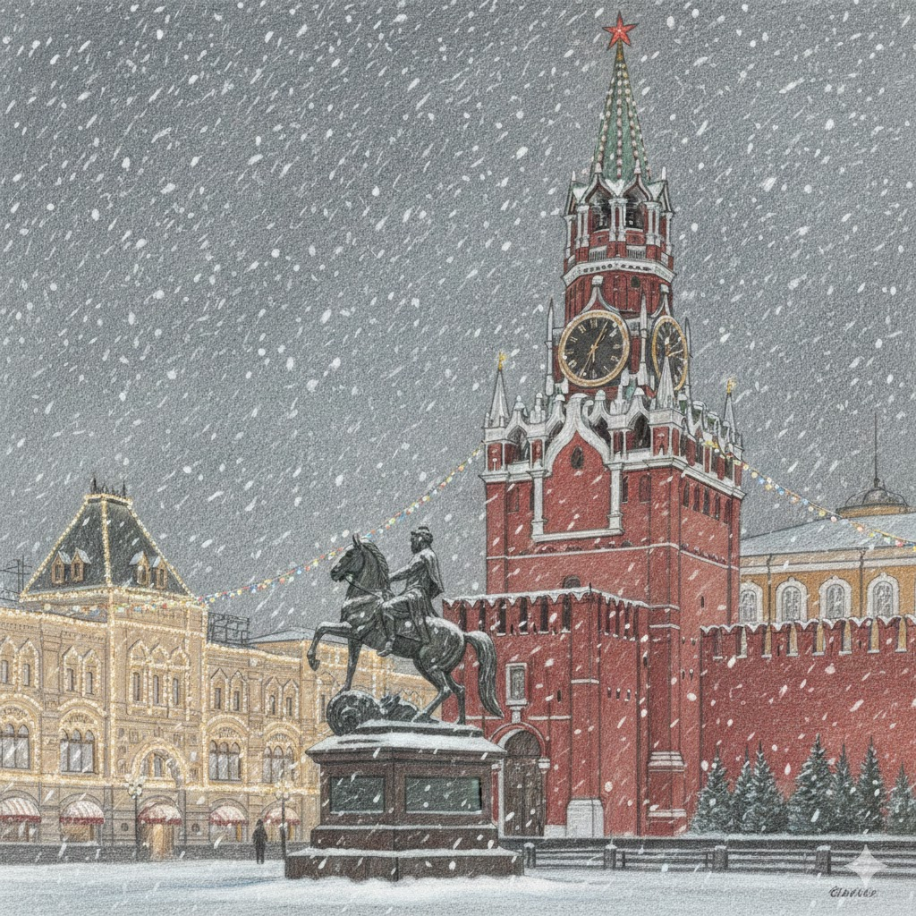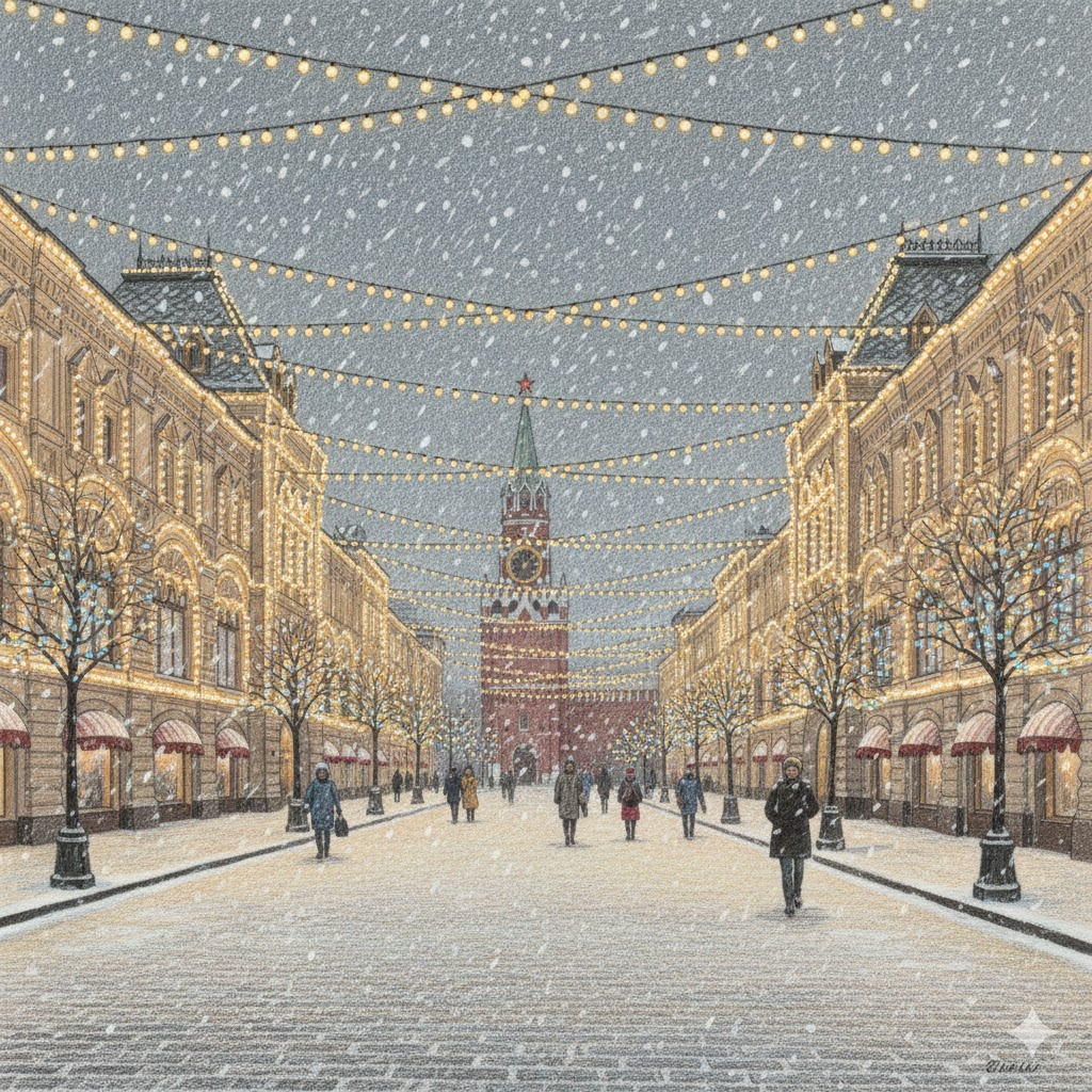 В это время Красная площадь меняет характер: пространство становится более спокойным, снег сглаживает масштаб, подсветка добавляет глубины. ГУМ снаружи выглядит как волшебный замок, а переход в Александровский сад ведёт к тихим аллеям и классическому виду на Кремль. Манежная площадь дополняет маршрут светом и движением. Здесь же можно заглянуть на экскурсию в Кремль (в том числе в Оружейную палату), а ещё по желанию посетить разные мероприятия в Кремлёвском дворце.